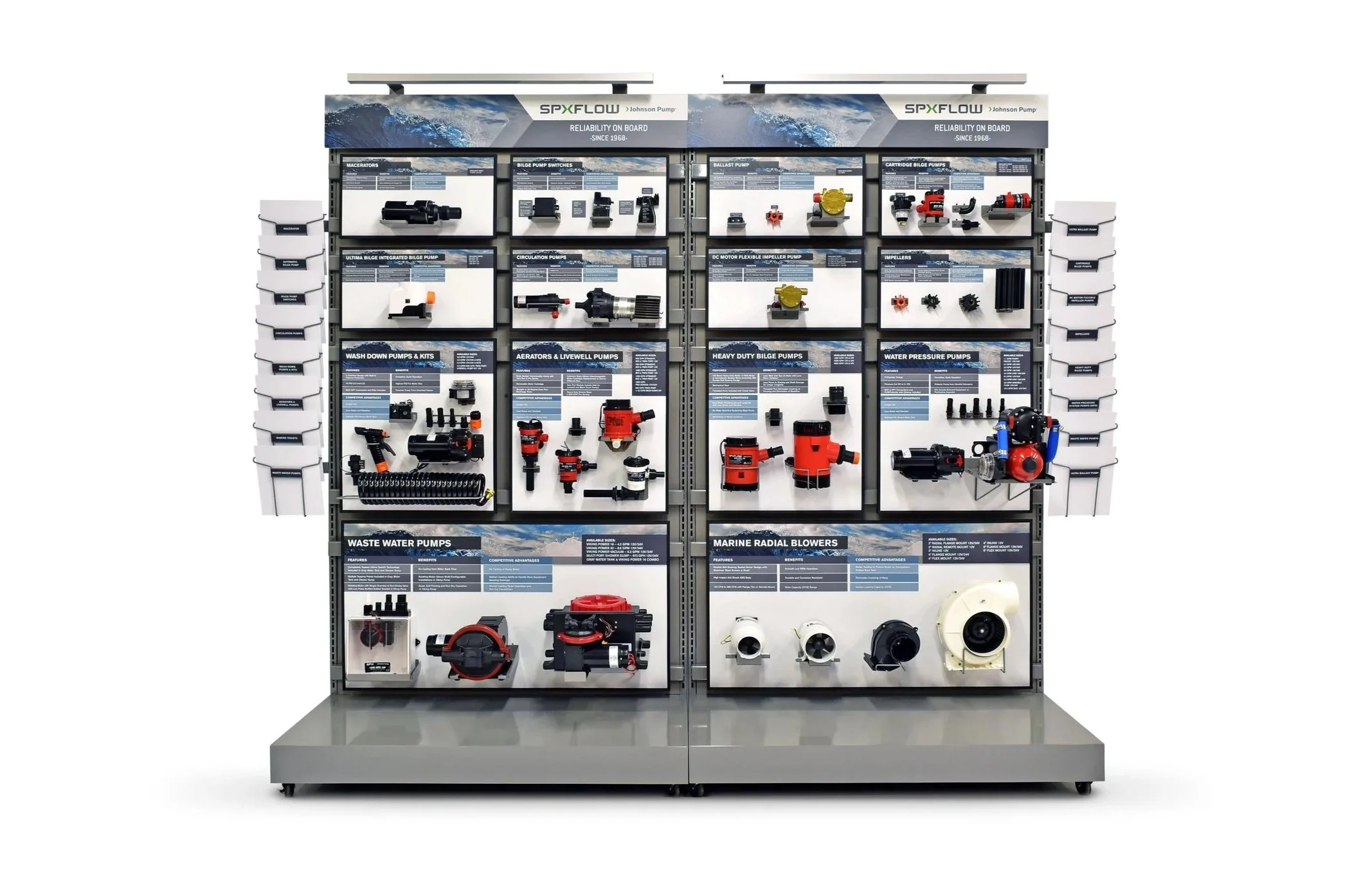 Innovative brought organization to the chaos with this modular system which features 54 products within 14 different categories - in just 8' of space. The interchangeable product panels are easily updateable for assortment updates.