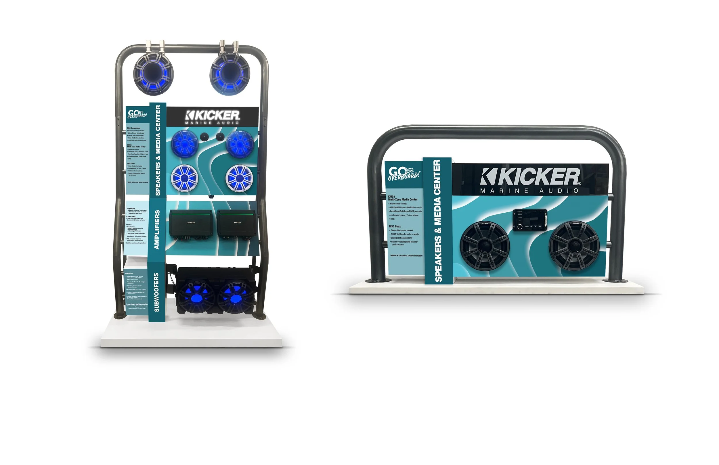 This marine audio display will be used in independent dealers to showcase the new Kicker Marine product. Each display is tuned to optimize sound and make the best consumer experience.