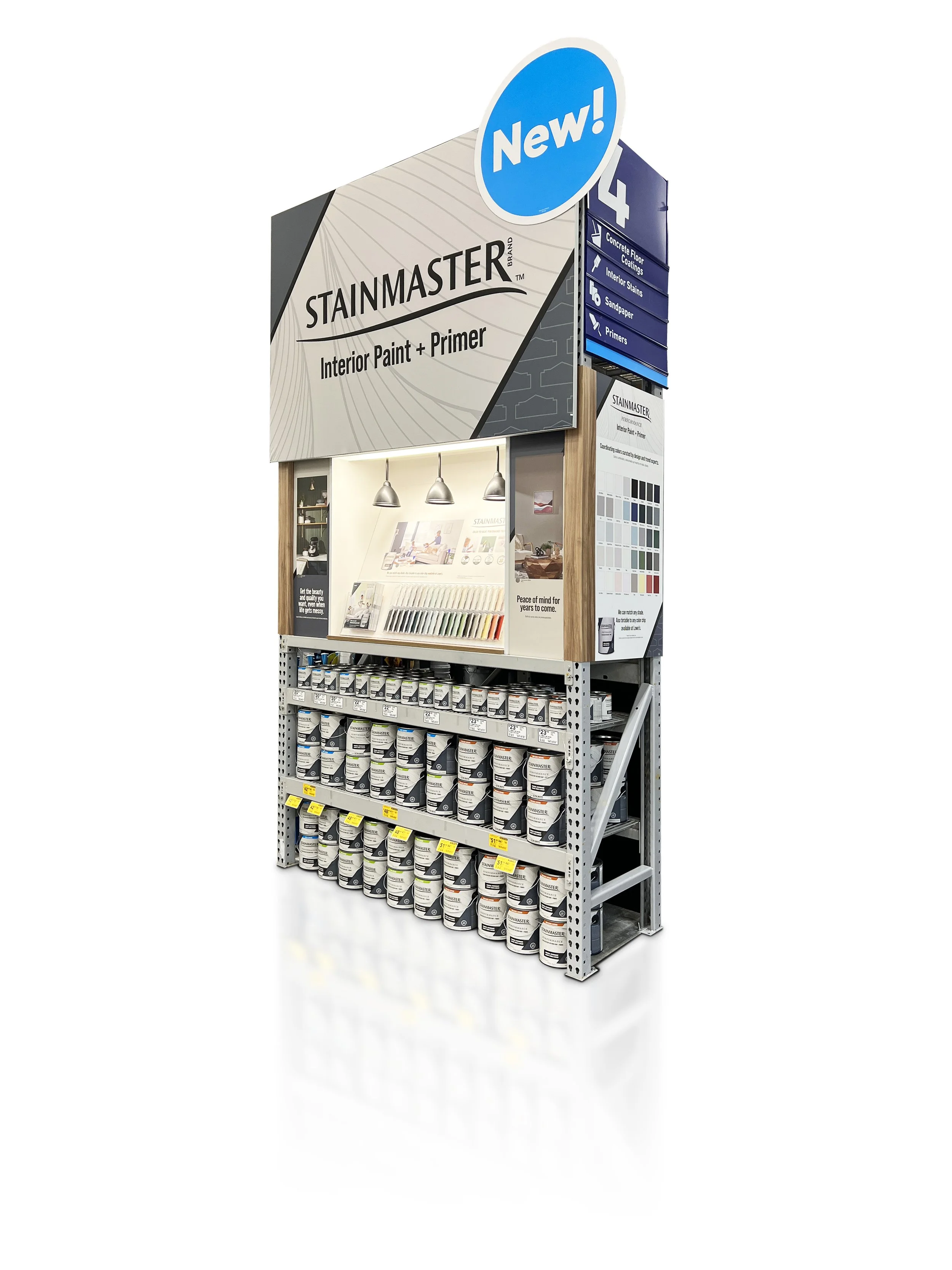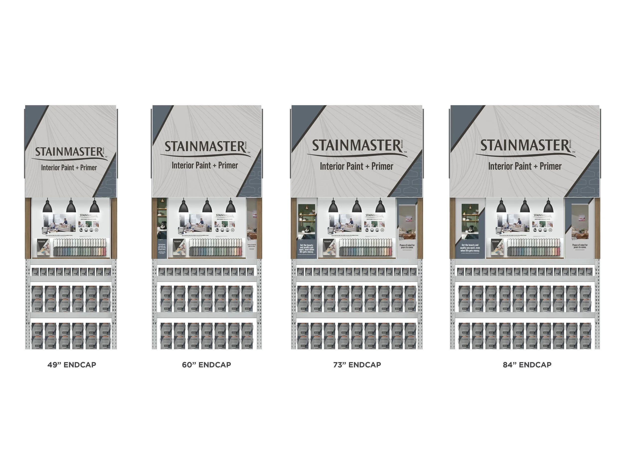 The launch of Stainmaster at Lowe’s features a “core-color presentation” that easily flexes to accommodate four different end cap widths. The entire presentation is cost-effective, consistent with the reimaging of the department, and impactful.