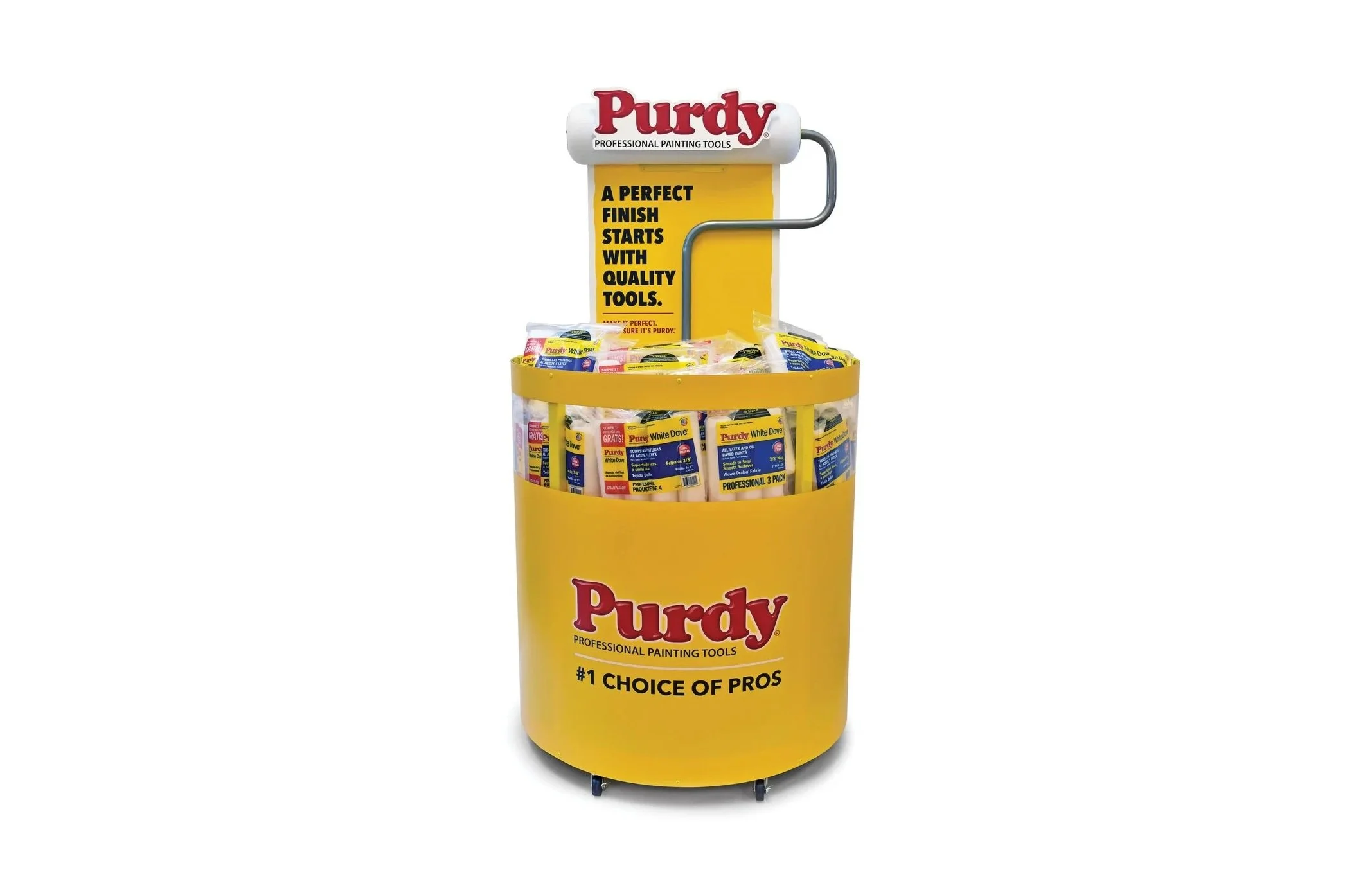 Purdy teamed up with Innovative to create a compelling “dump bin” for its bulk roller covers. A real attention grabber, this mobile solution features a 3D-oversized roller header with the Purdy logo. Accessory products and tools were merchandised on the backside for incremental, add-on sales.