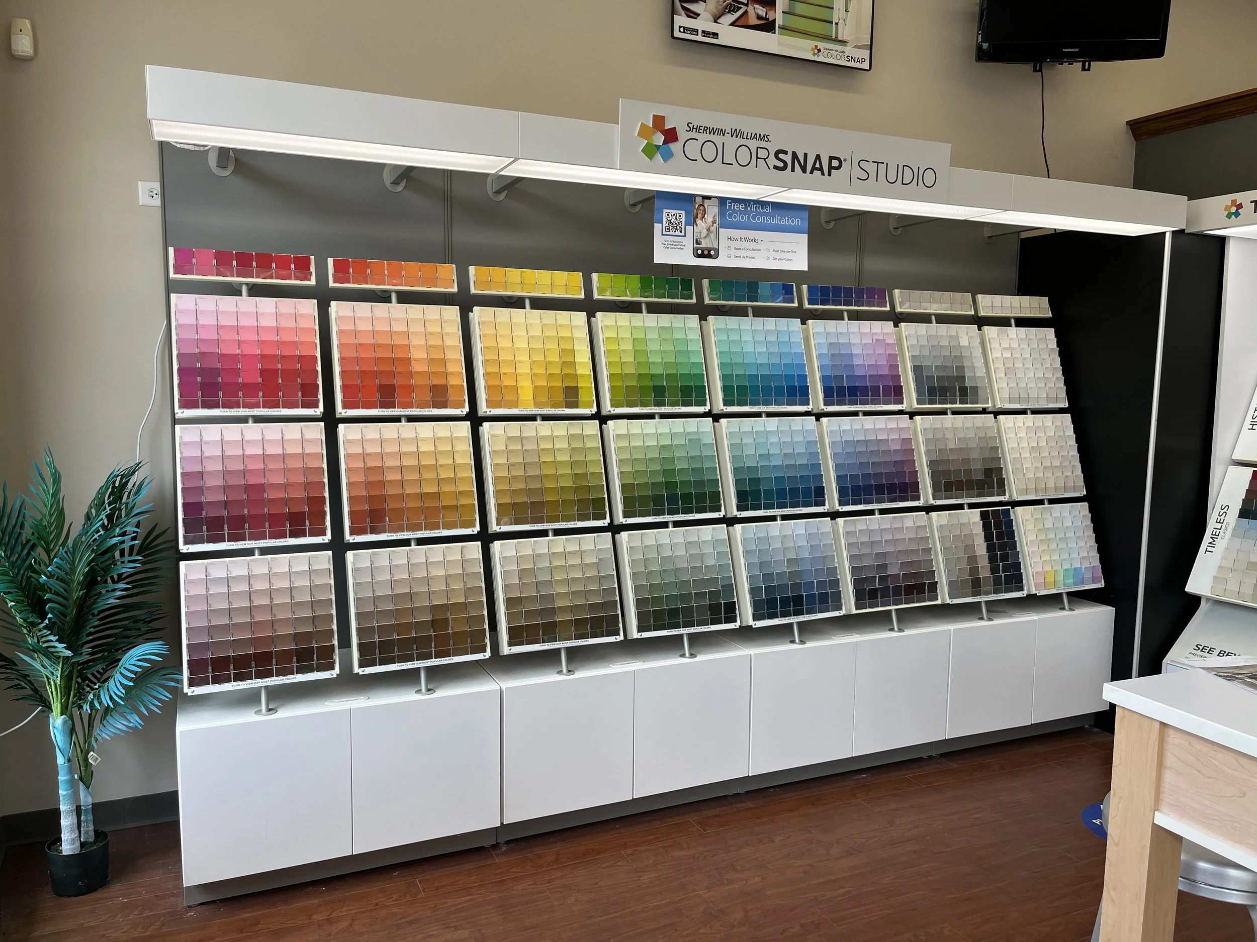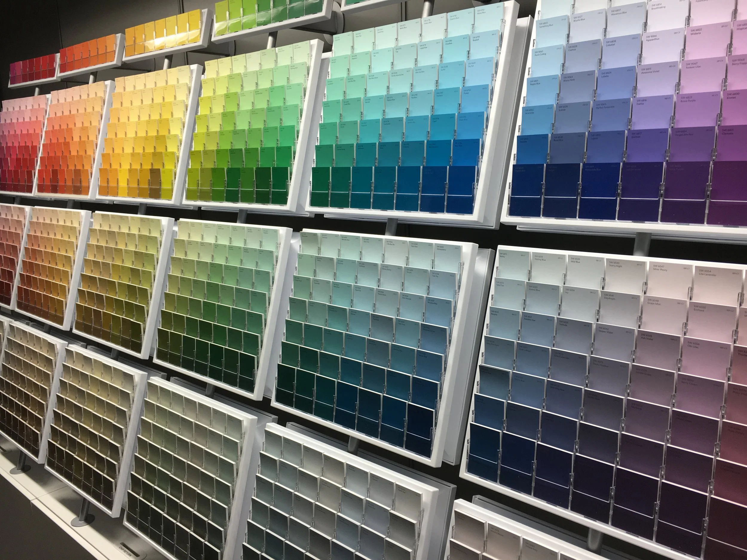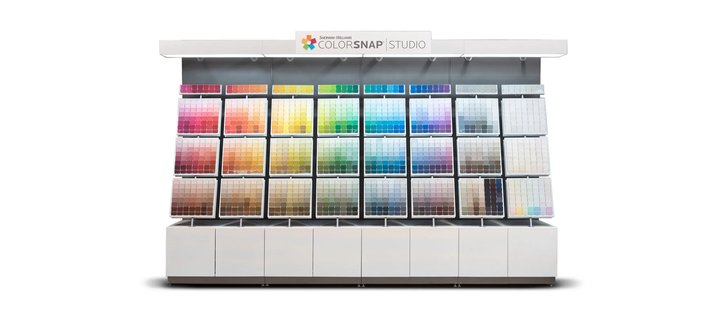 This was the largest and most revolutionary color launch in the 150-year history of Sherwin-Williams. Large color swatches represent color families on panels that spin to reveal individual color chips.