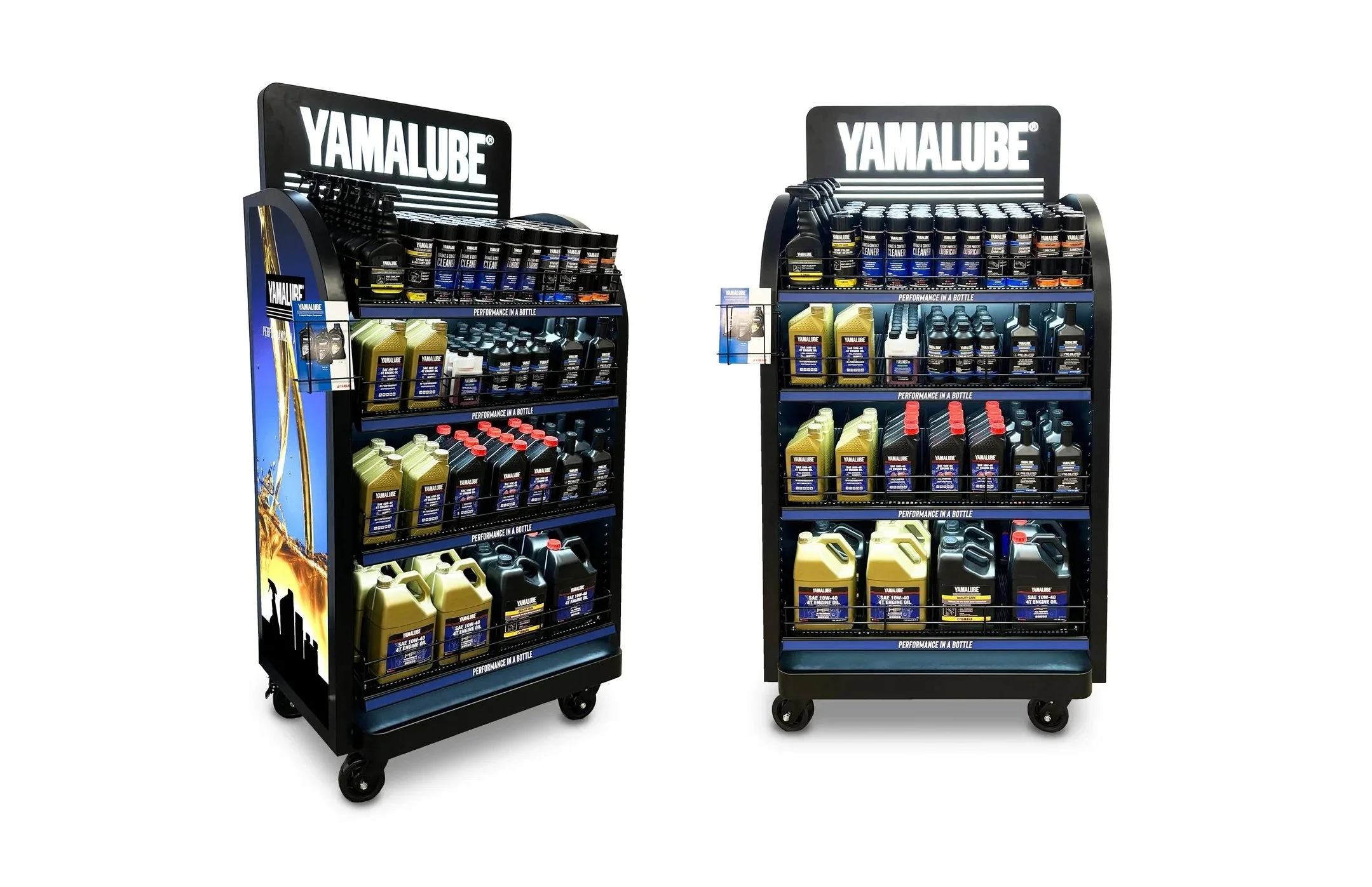This display features SEG panels on three sides, an illuminated header, and gravity feed shelves and underlighting so the product is the hero. The display can support nearly 1,000 lbs of product.